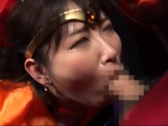 Horny Asian slut in costume enjoys sucking on a massive boner